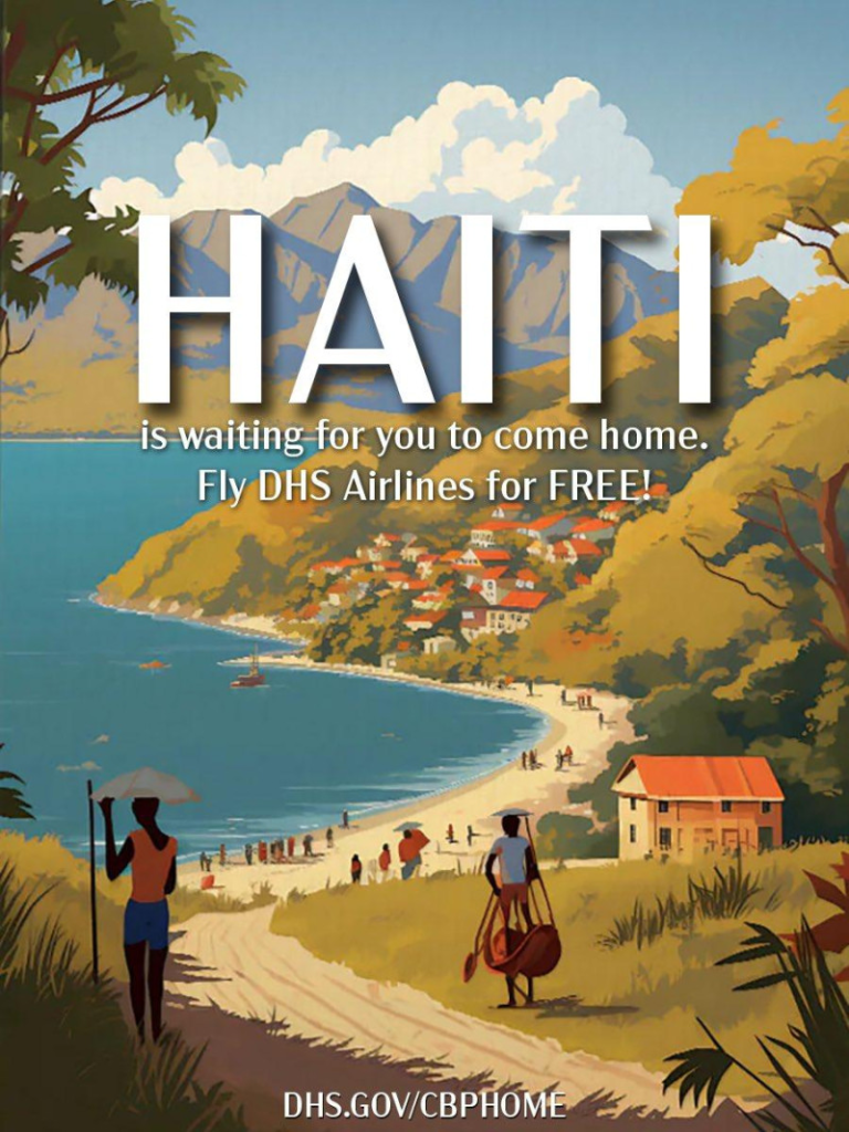 En las redes sociales, el DHS publicó la información de la aplicación con una imagen que contiene el mensaje: “Haiti is waiting for you to come home. Fly DHS Airlines for Free» (Haití está esperando que vuelvas a casa. Vuela gratis con DHS Airlines).